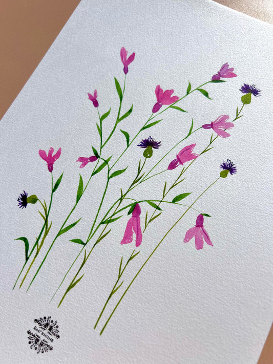 Aquarelle A4 - Lavande papillon et bleuets