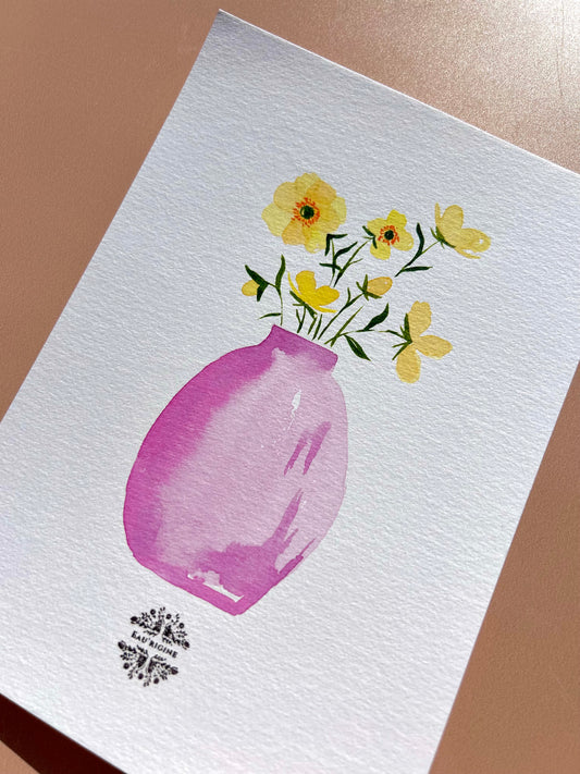 Aquarelle A5 - Boutons d’or en vase rose