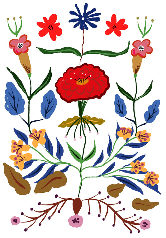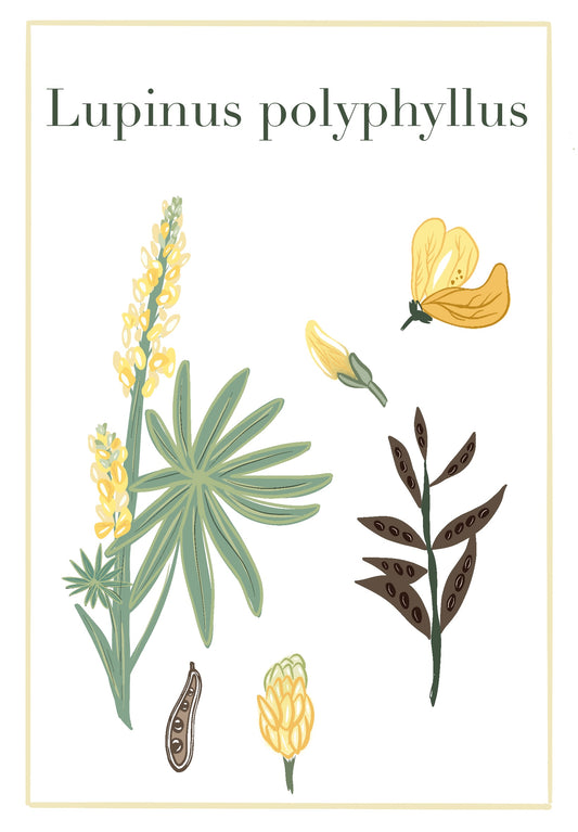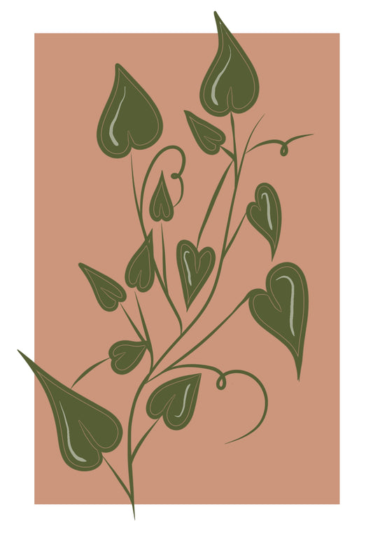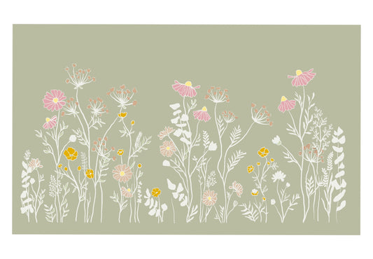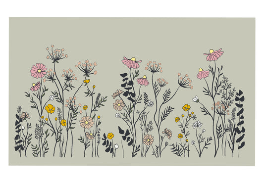 Illustration numérique A4 - Banc de fleurs grises sur fond vert