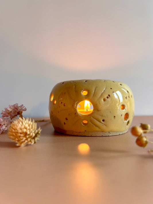 Photophore en céramique jaune