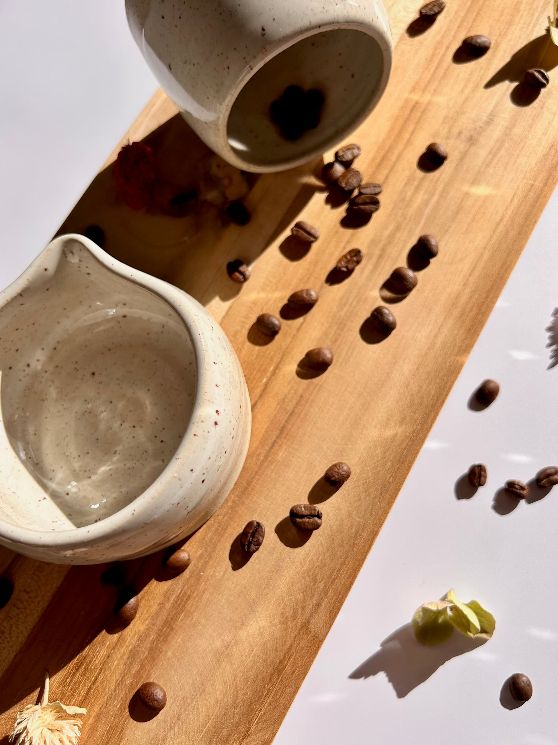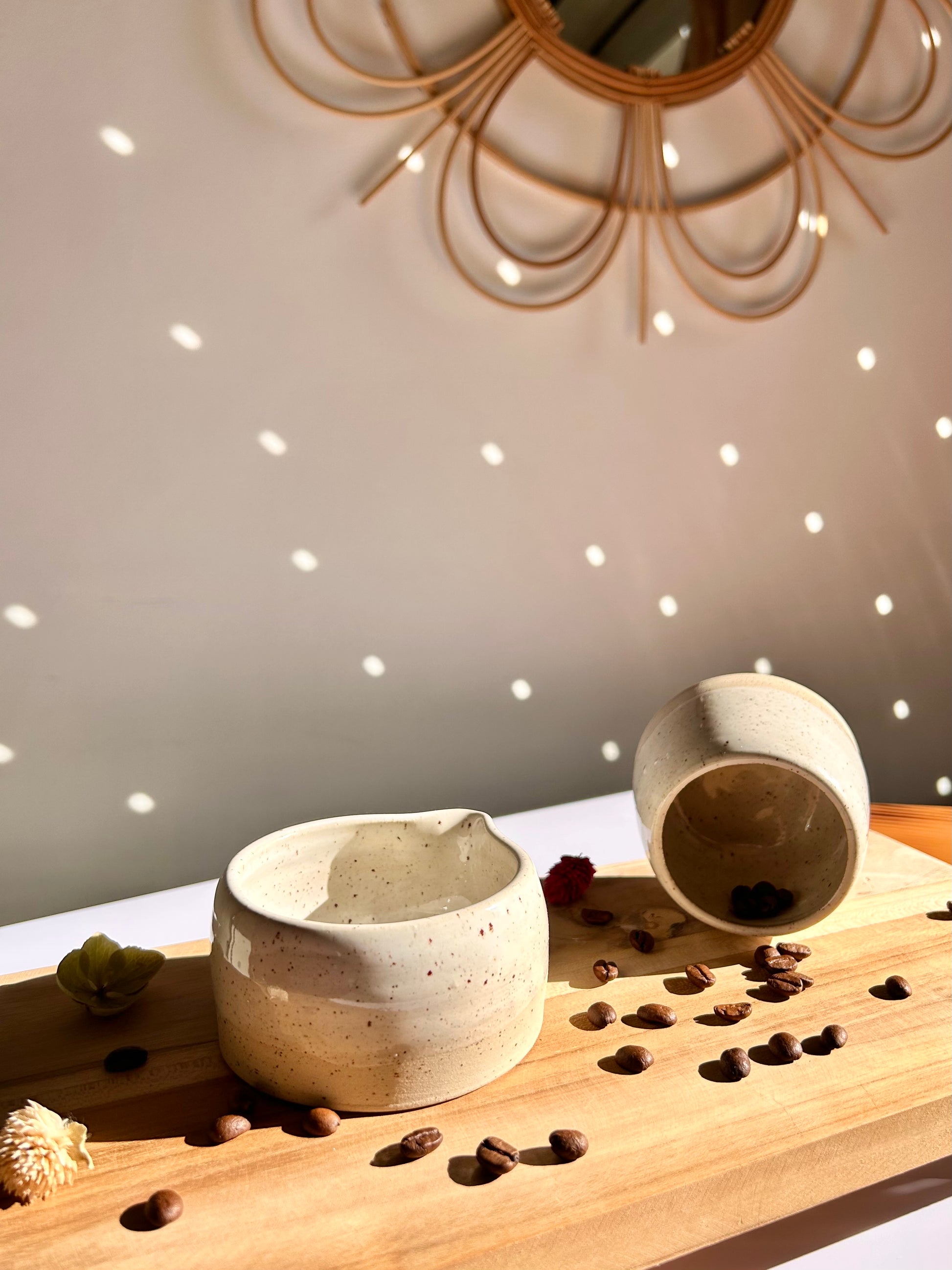 Un petit pichet en céramique, façonné à la main dans mon atelier, idéal pour servir un filet de lait, de crème, ou même une sauce légère.